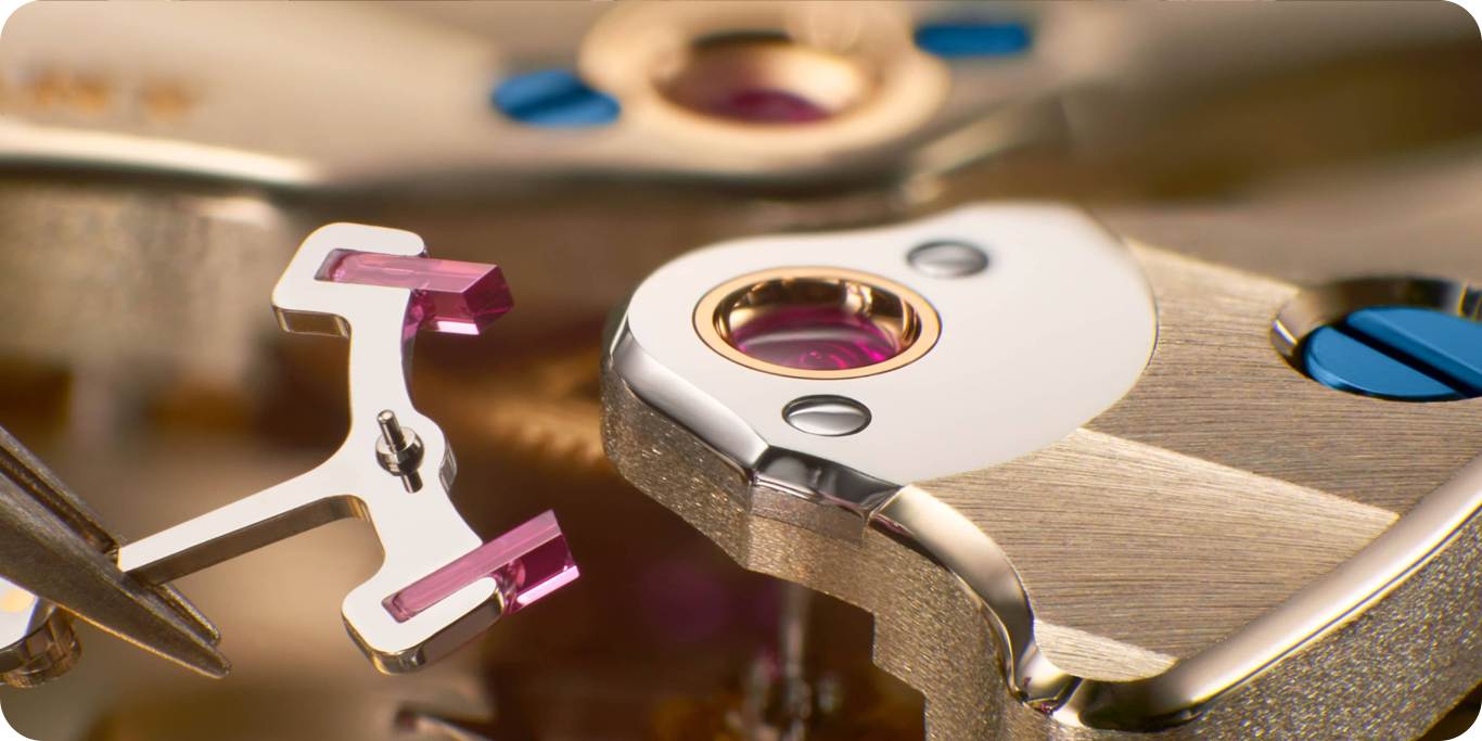 The idea starts with a practical problem. Traditional luminous material doesn’t work well on moving displays like jumping numerals, where the constant change limits how much light can be absorbed. Lange’s solution was to shift the problem to the dial itself. A tinted sapphire crystal allows ultraviolet light to pass through while blocking most visible light, continuously charging the luminous elements beneath it.