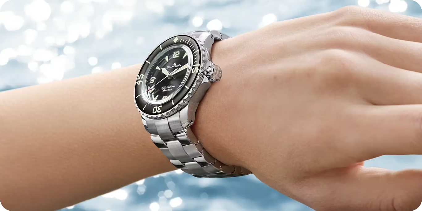 Although the rotating diving bezel was popularized by the Rolex Submariner, Blancpain’s Fifty Fathoms was the first timepiece with this feature since it was released about a year earlier than the Submariner.