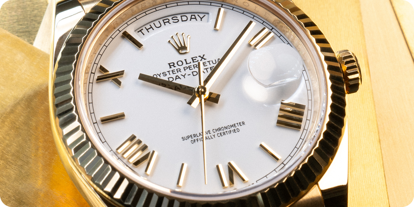 Gold remains the reference point. Slip on a yellow gold Day-Date and the feeling is immediate: dense, warm, alive. It hums with history, and that presence is undeniable.