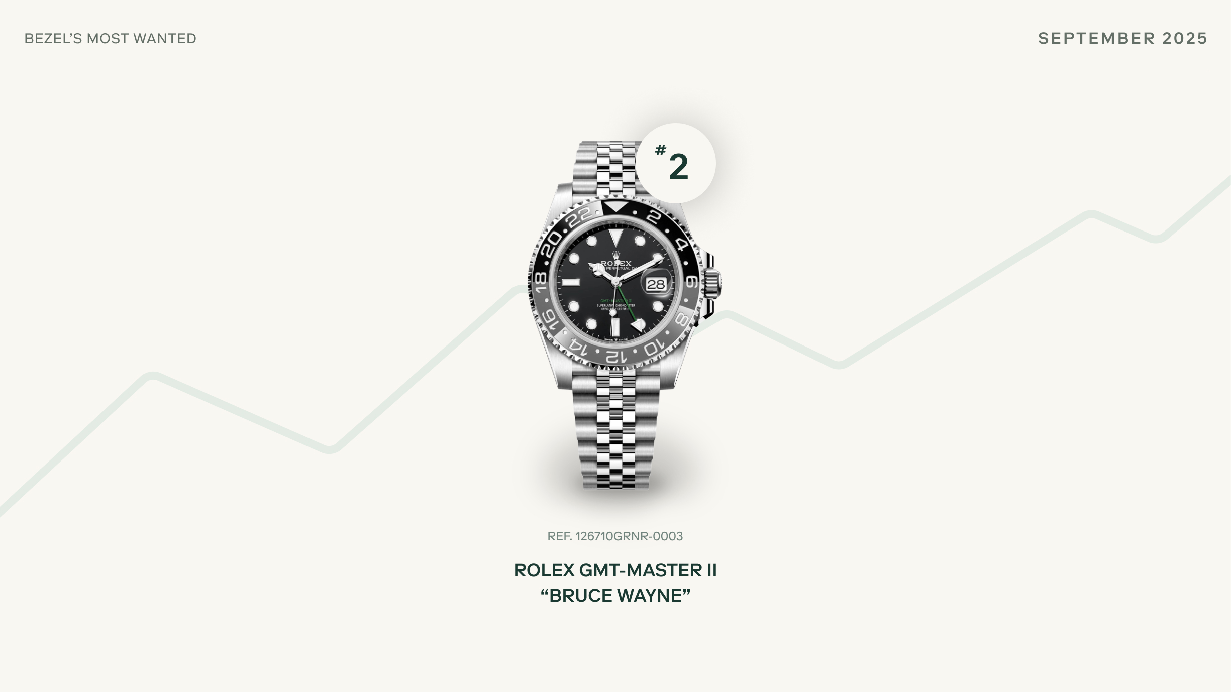 The Jubilee bracelet version holds onto second place for a second consecutive month. The split ranking with its Oyster counterpart shows just how central the “Bruce Wayne” has become to the modern GMT narrative.